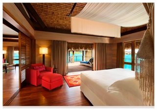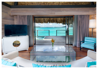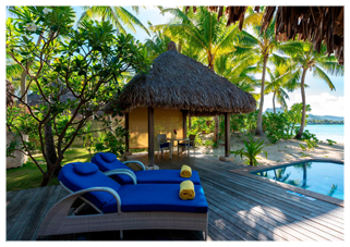 • Bora Bora in a bungalow-style villa decorated with exquisite tropical décor